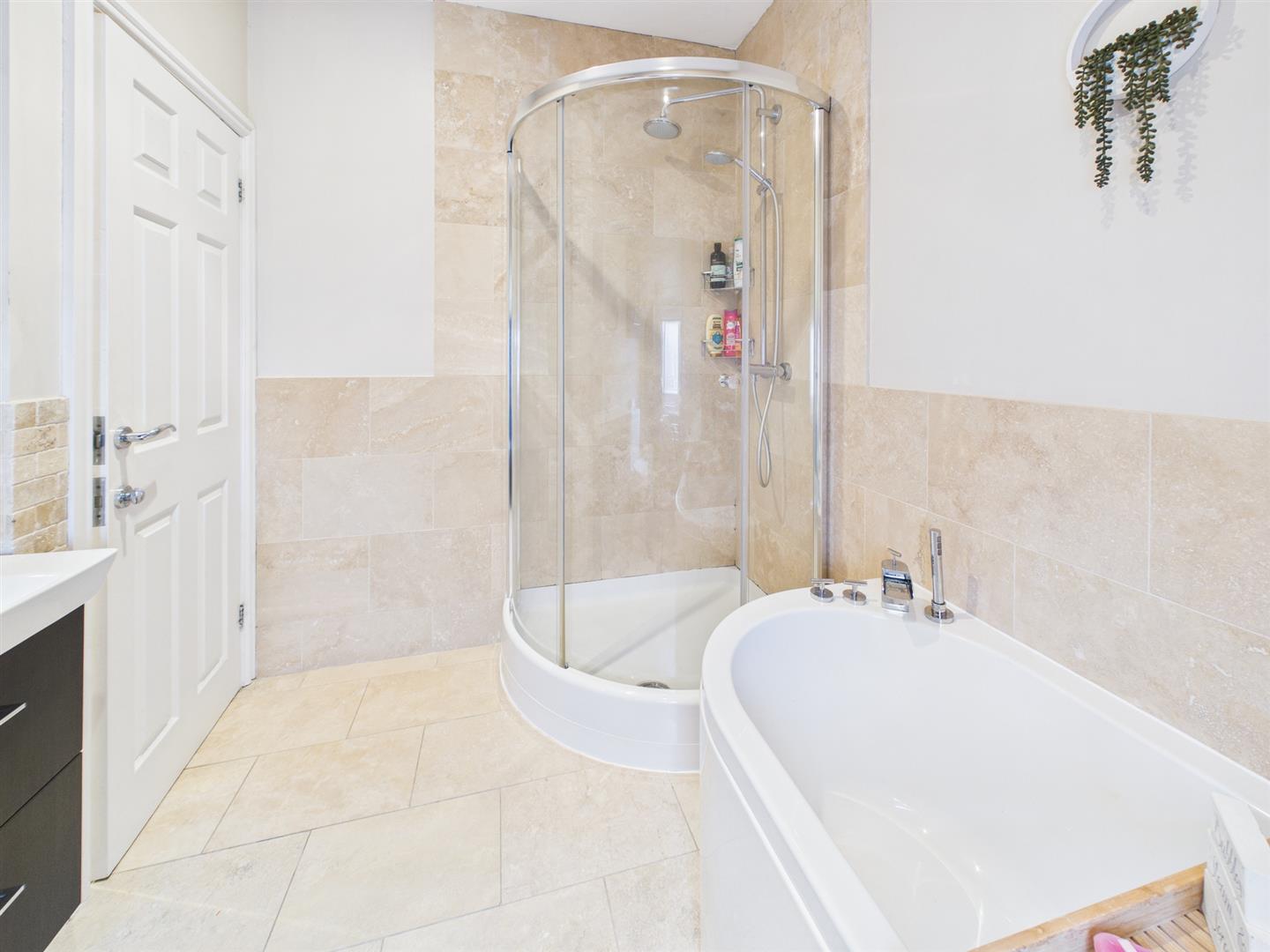 Upstairs, there are four well-proportioned double bedrooms, all fitted with built-in wardrobes. The primary bedroom and guest bedroom both benefit from stylish, modern ensuite shower rooms, while the remaining bedrooms are served by a beautifully refitted family bathroom complete with underfloor heating.