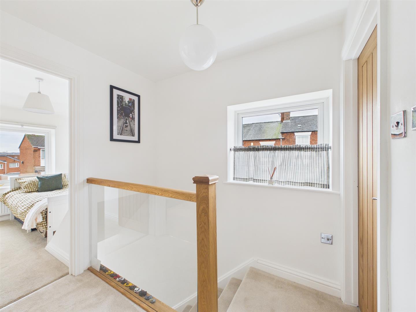 To the first floor are three well-proportioned bedrooms, one of which benefits from built-in wardrobes. The stylish shower/wet room has been modernly fitted with a low-level WC, wash hand basin and walk-in shower with floor drainage, all finished with quality contemporary fittings to create a sleek and functional space as well as having underfloor heating.
