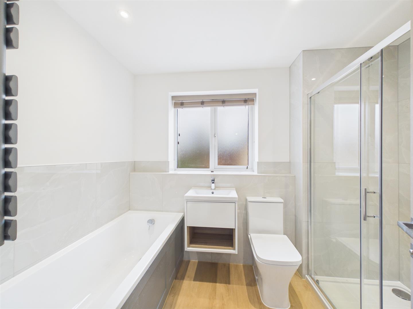 Upstairs, the property features three generous double bedrooms and a luxury bathroom with separate bath and shower, combining comfort and elegance.