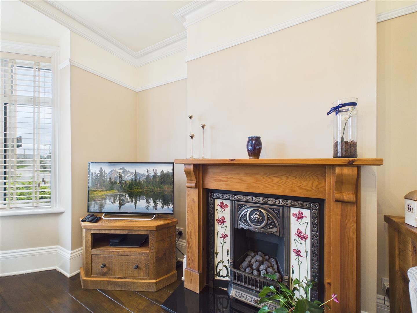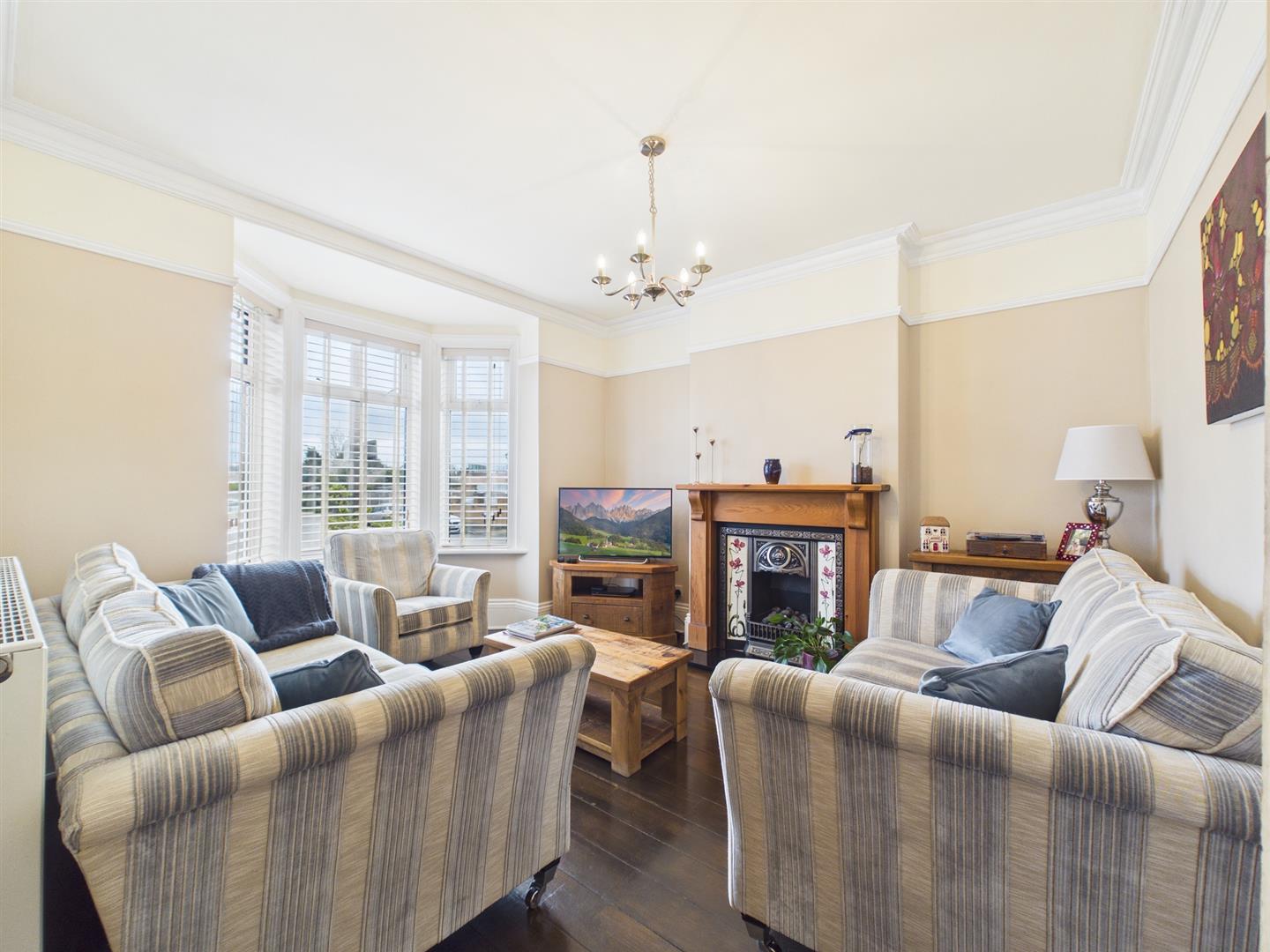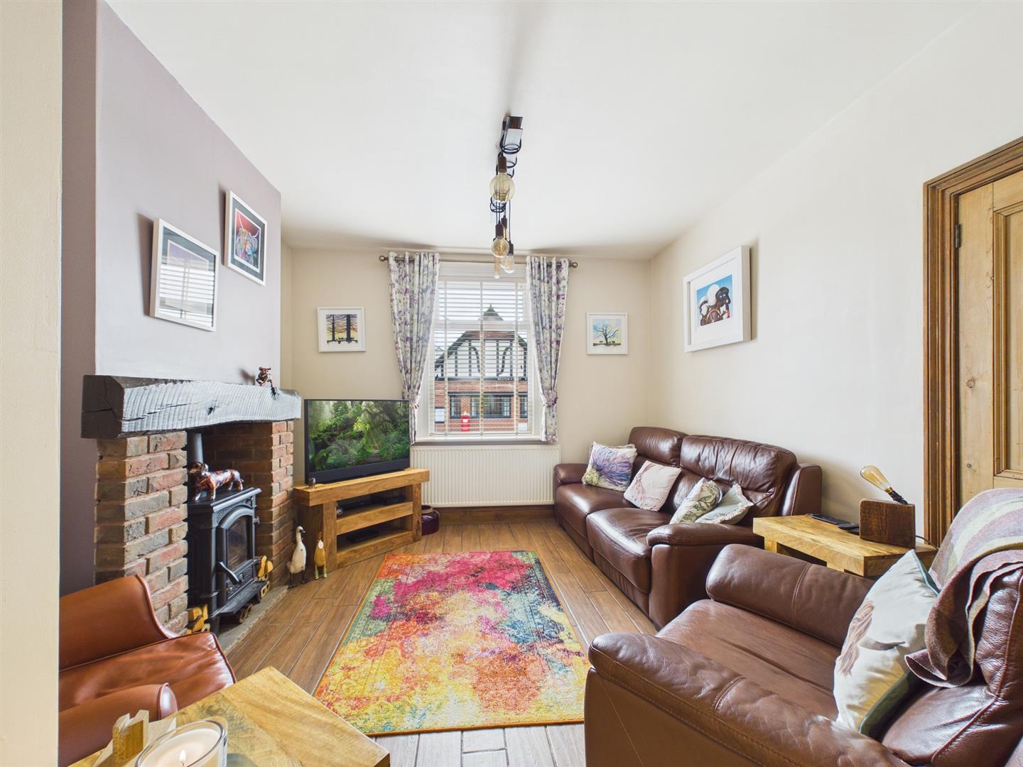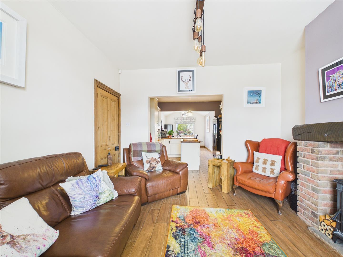 Upon entering the property, you are welcomed by a light and airy entrance hall. This leads to a front-facing lounge featuring a bay window and a characterful fireplace. To the rear, an impressive open-plan living space spans the full length of the property, incorporating a comfortable sitting area with a log-burning stove, a well-appointed kitchen, and a dining area.