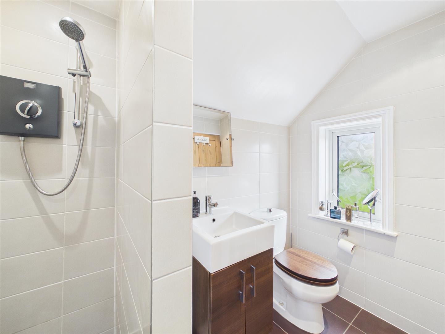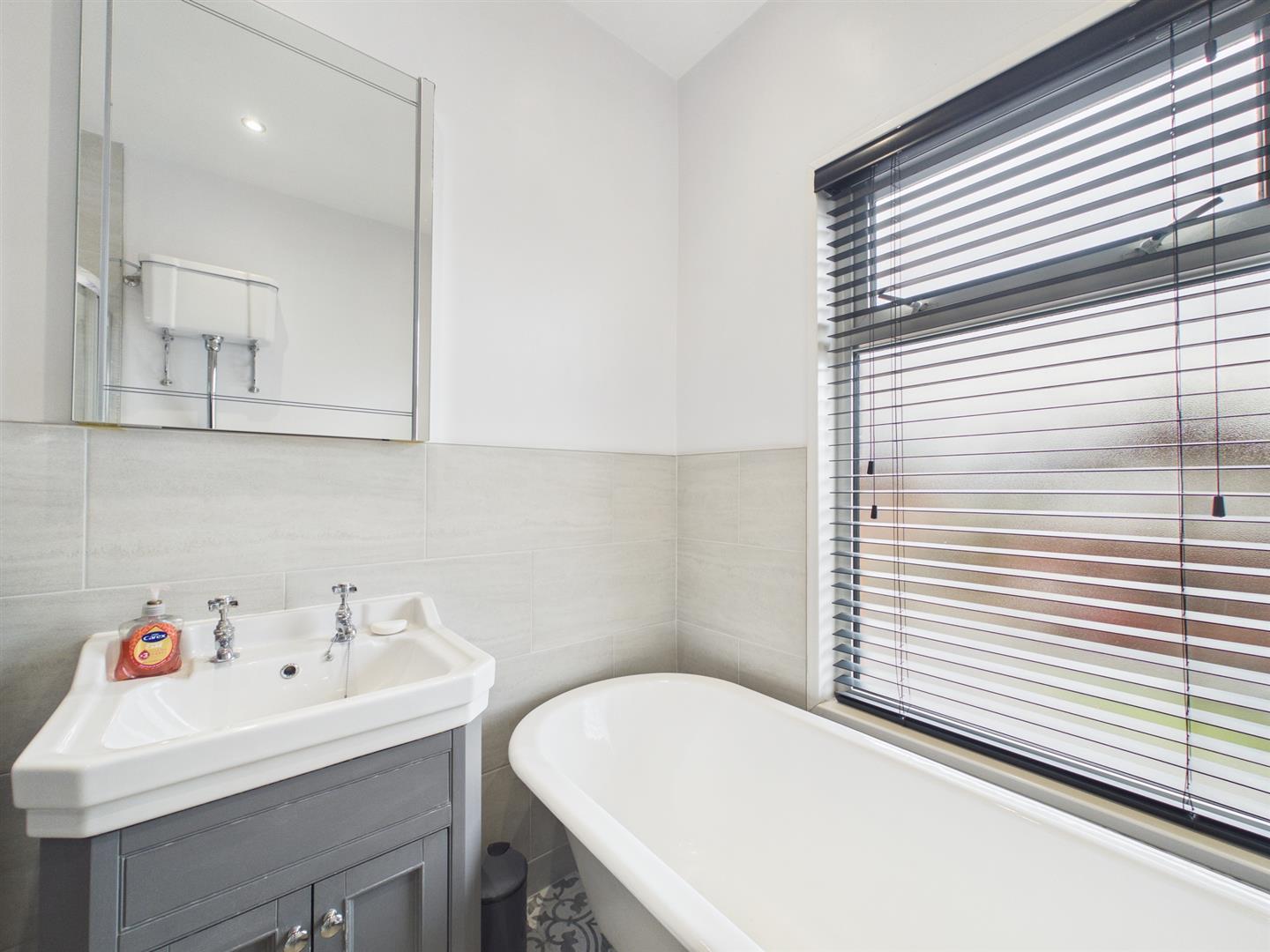 To the first floor, a spacious staircase leads to a bright landing, providing access to three generous double bedrooms. The principal bedroom benefits from an en-suite shower room, while the remaining bedrooms are served by a stylish four-piece family bathroom, featuring a freestanding cast iron bath, wash hand basin, WC, and a double corner shower cubicle.