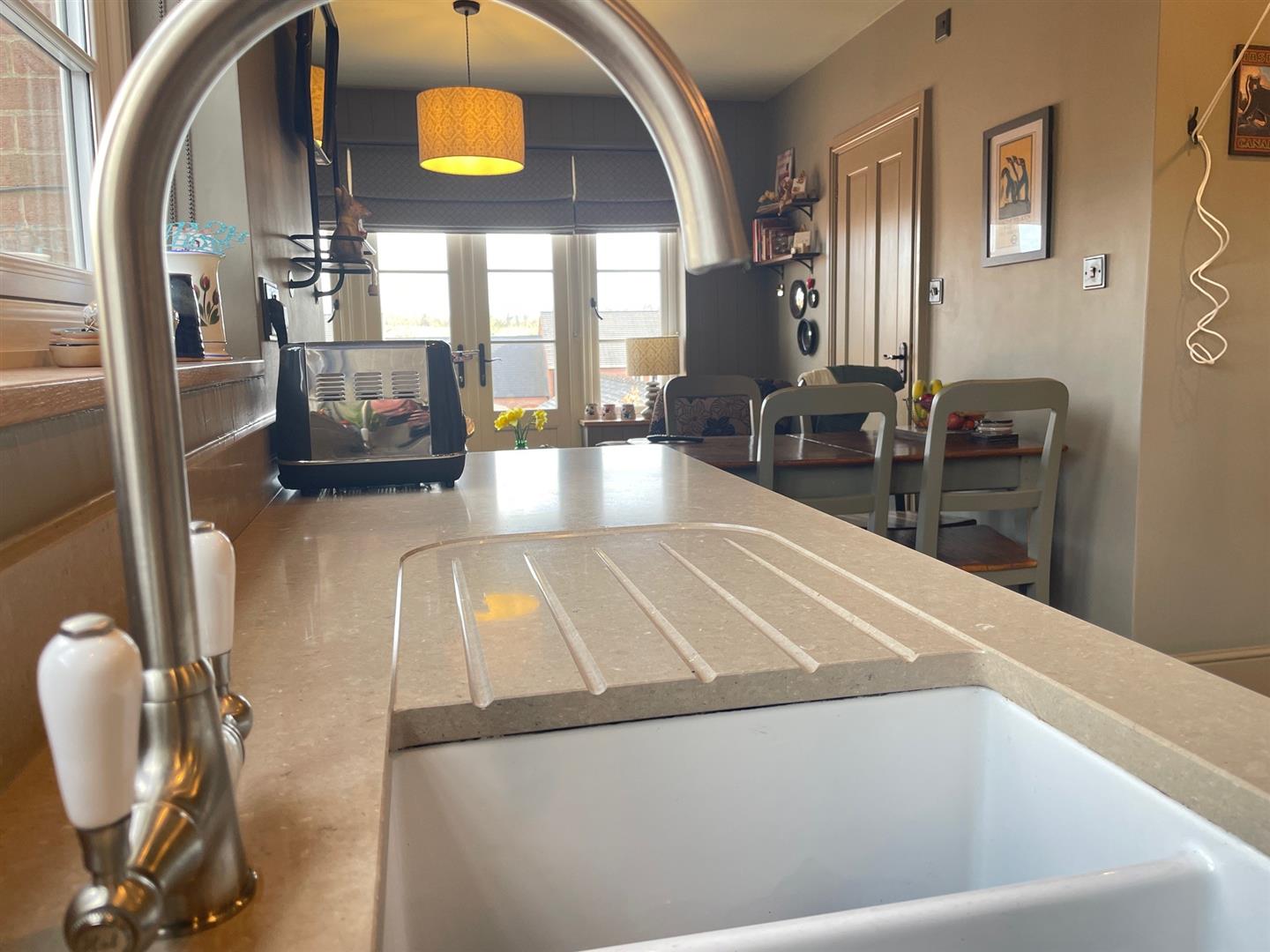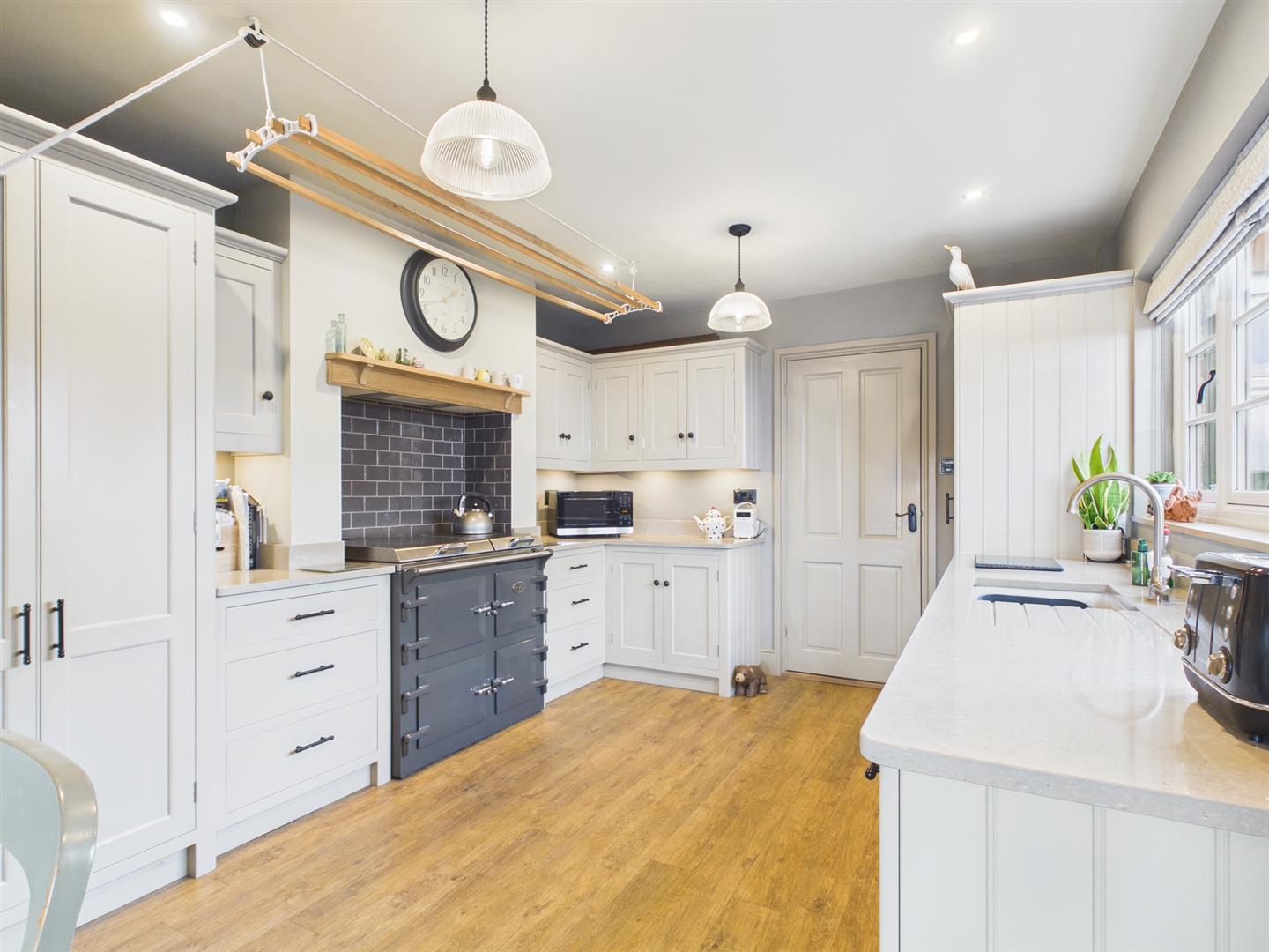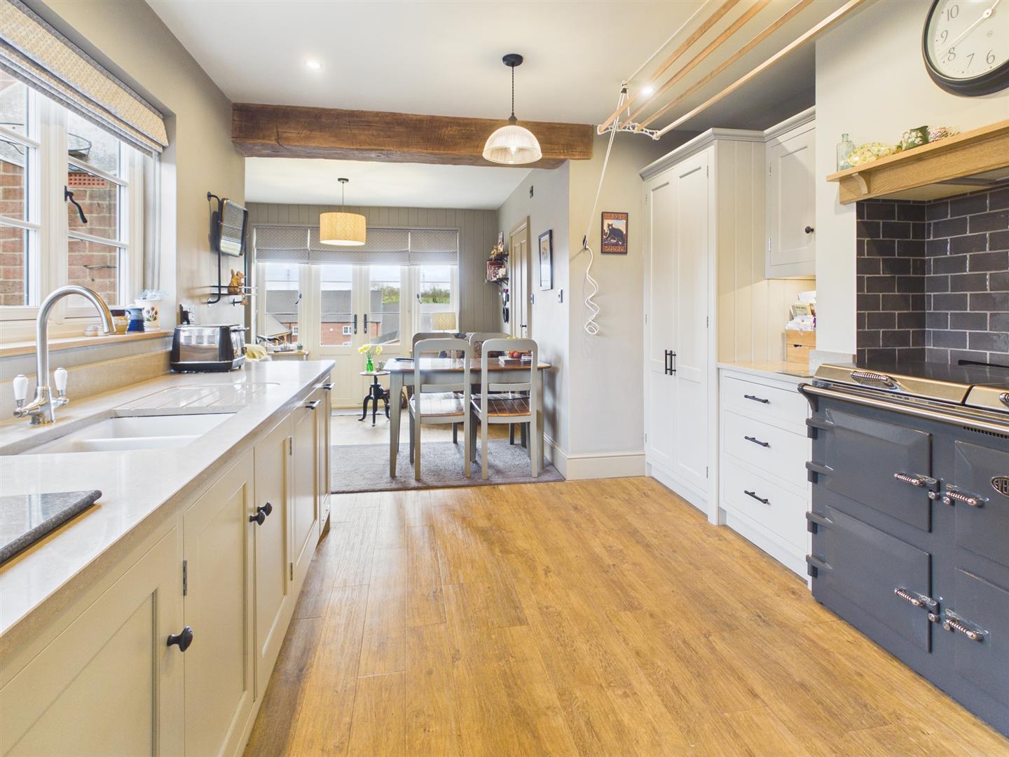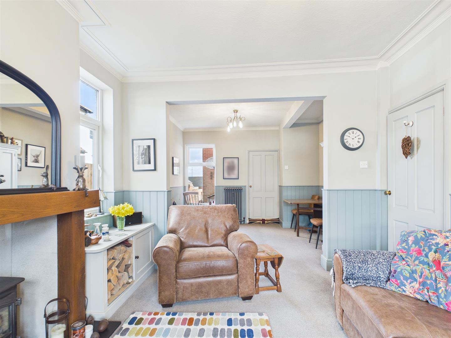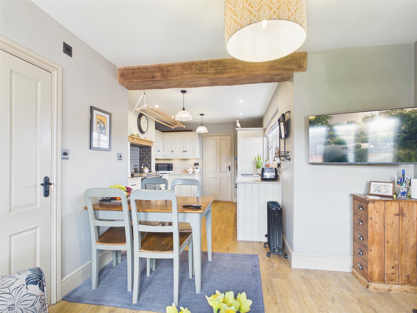 Internally, the property has been tastefully designed and offers versatile living accommodation. The entrance porch leads into a welcoming hallway, providing access to the staircase to the first floor and the main ground-floor living space. The ground floor comprises an open-plan living and dining area with log burner leading through to a fully fitted kitchen with built-in appliances. A beautifully designed breakfast area features French doors that open onto the landscaped rear garden which is a sun trap all day around. There is also a well-proportioned shower room on the ground floor.
