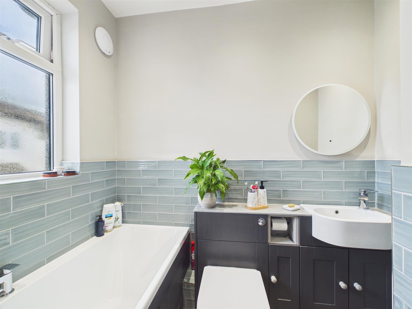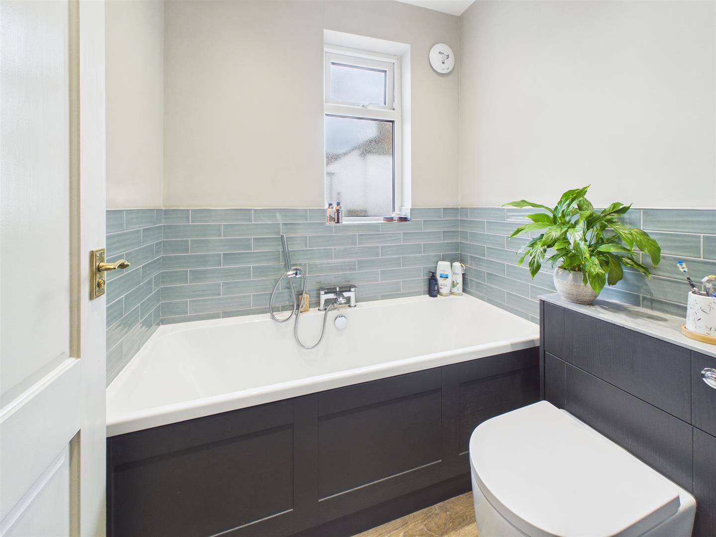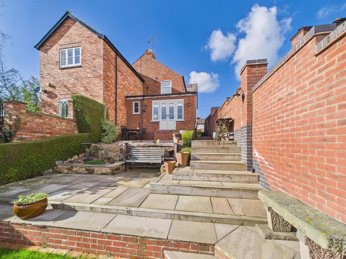 Externally, the front of the property benefits from a shared pathway leading to the entrance, alongside a well-maintained front garden. Gated private side access leads to a recently landscaped rear garden featuring steps down to multiple patio areas, well-stocked borders, and a generously sized lawn at the bottom of the garden.